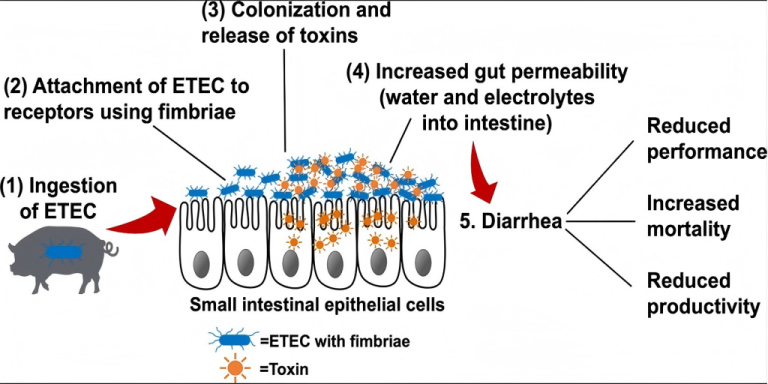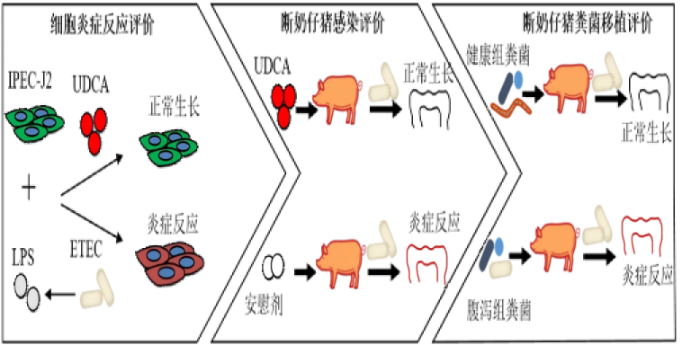 基于断奶仔猪肠-肝脏胆汁酸代谢轴调控理论,通过熊去氧胆酸(UDCA)干预肠道微生态平衡,从分子机制层面阻断产肠毒素大肠杆菌(ETEC)的致病通路,实现”标本兼治”的无抗防控,突破传统替抗产品效果不稳定的技术瓶颈。